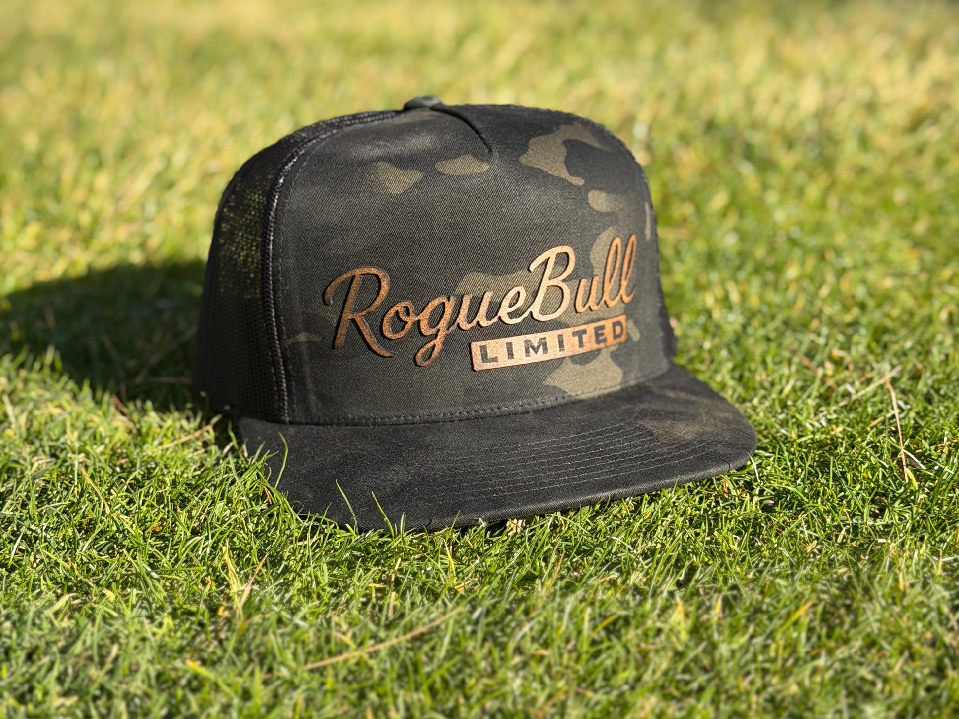 Built for long days under the sun and late nights by the fire, the Rodeo Ledge Snapback is where backcountry grit meets western pride. This cap features a shadowed camo crown with burnt saddle-tan laser cut leather of the RogueBull script, paired with a rugged “LIMITED” patch that sets it apart from anything you’d find on a store shelf.